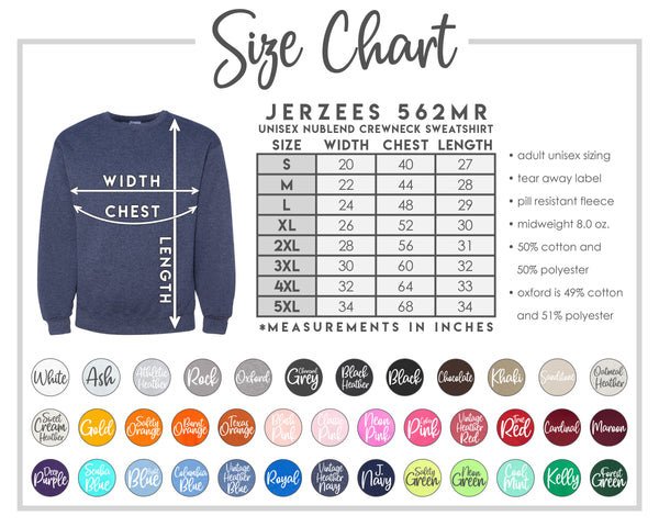 PLEASE READ! If a Jerzees Sweatshirt is UNAVAILABLE or OUT OF STOCK, I will use an alternative sweatshirt brand. My alternatives are Hanes and Gildan. I will choose the same color or 'dupe' if your sweatshirt color and size is out of stock. If it's a significant difference, I will contact you about an alternative.