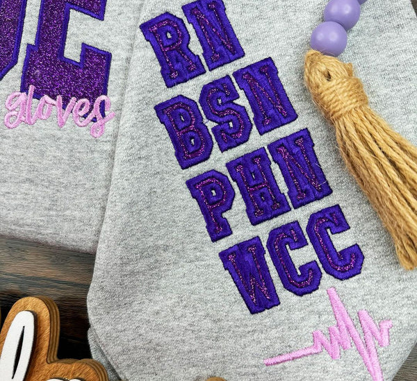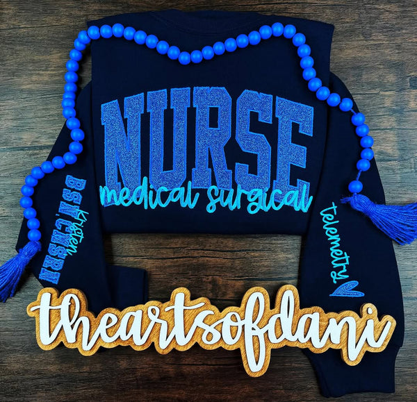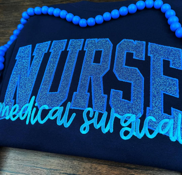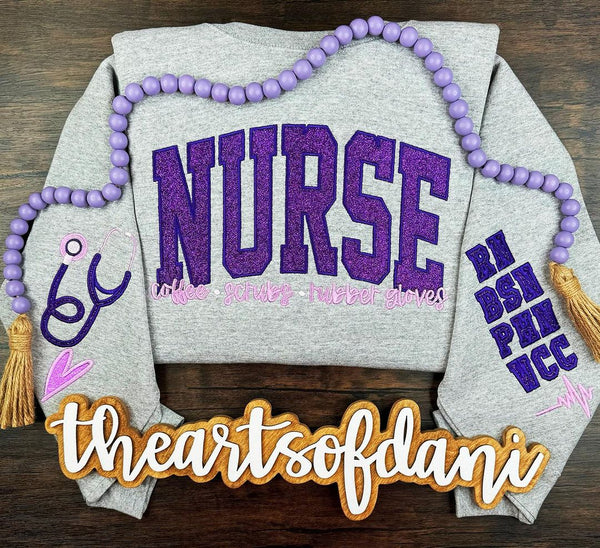 Celebrate your favorite healthcare professional with our NURSE Glittered Sweatshirt. This gorgeous item is perfect for current nurses, future nurses, or as a gift for your favorite nurse. Fully customizable with specialty, glitter color, and sleeve detailing, it's a great way to show off your personal style. Our current processing and shipping time is 8-10 weeks from the date your order is placed. This is excluding holidays and weekends. There is NO exception to this policy unless explicitly discussed with me about a Rush Order OR your order has been placed BEFORE a cut-off deadline (ie. Mother's Day, Christmas, etc.) Please CONTACT me BEFORE placing your order if you need your order before the shop policy deadline.