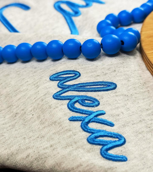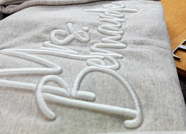 Introducing our Scripted Puff Pullover - a fresh twist on a classic design. Keep it simple and stand out from the crowd with the unique 3D lettering on this custom sweatshirt. Machine wash on cold and tumble dry low for easy care. (Did someone say "puff"? This pullover is a blast!)
